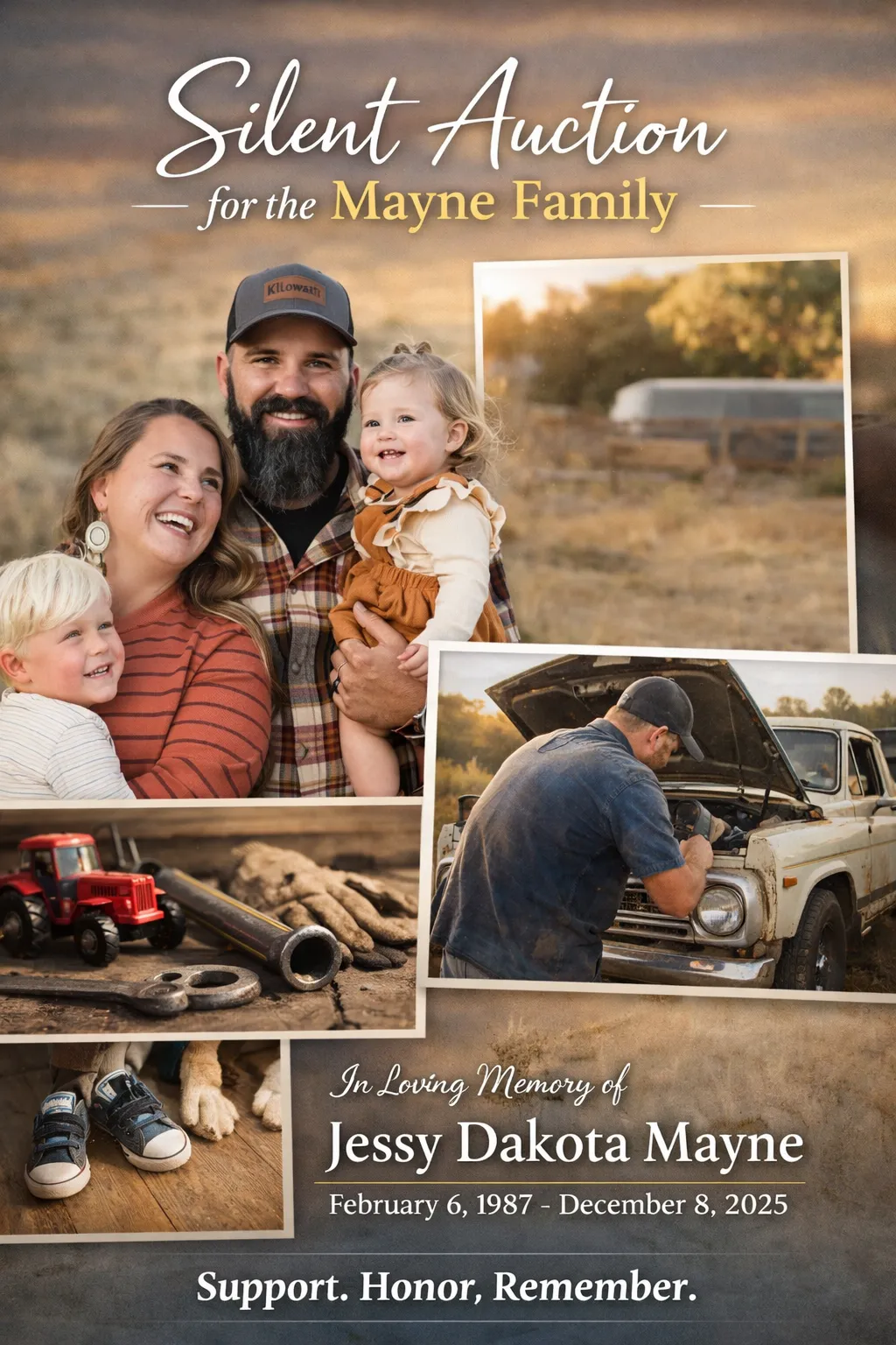 Jessy Dakota Mayne (February 6, 1987 – December 8, 2025) was a devoted husband, father, and skilled tradesman whose life was rooted in craftsmanship, curiosity, and an unwavering love for his family. Raised in Red Deer, Alberta, Jessy learned the value of hard work early, building homes alongside his father and later earning multiple certifications as a mechanic. Known as the person everyone turned to when something needed fixing, Jessy gave freely of his time, knowledge, and heart, leaving a lasting impact on coworkers, friends, and family alike.